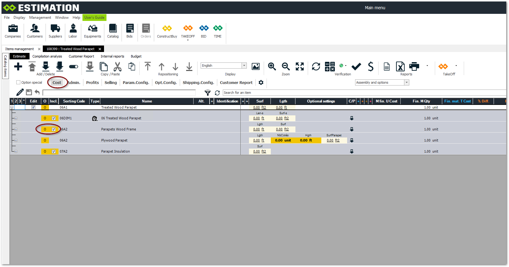 Return to the Cost tab: A checkbox will now be visible to include or exclude this item