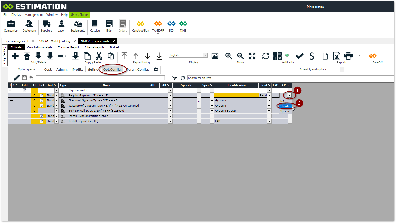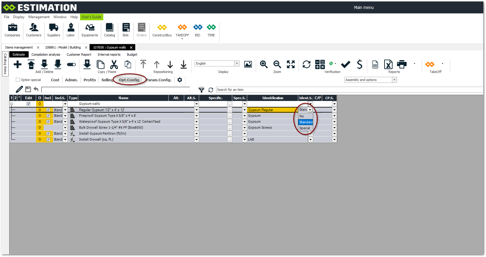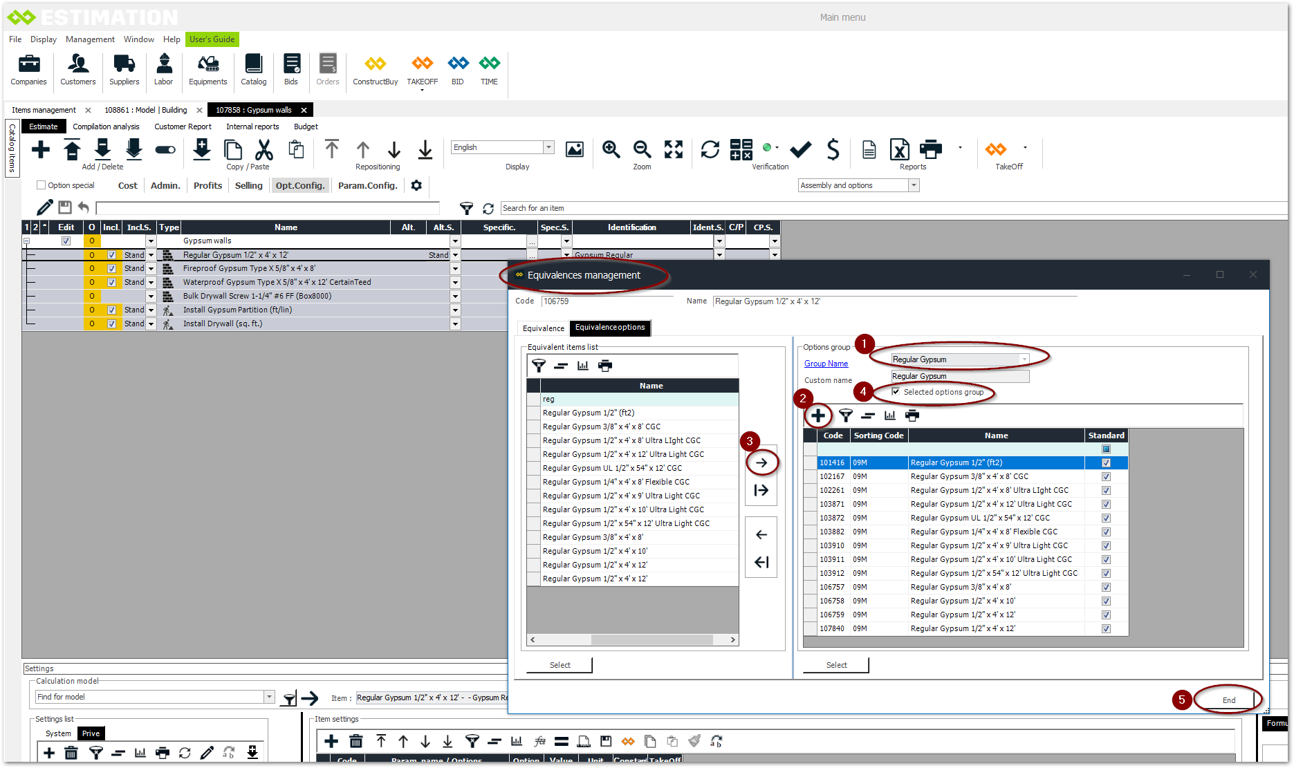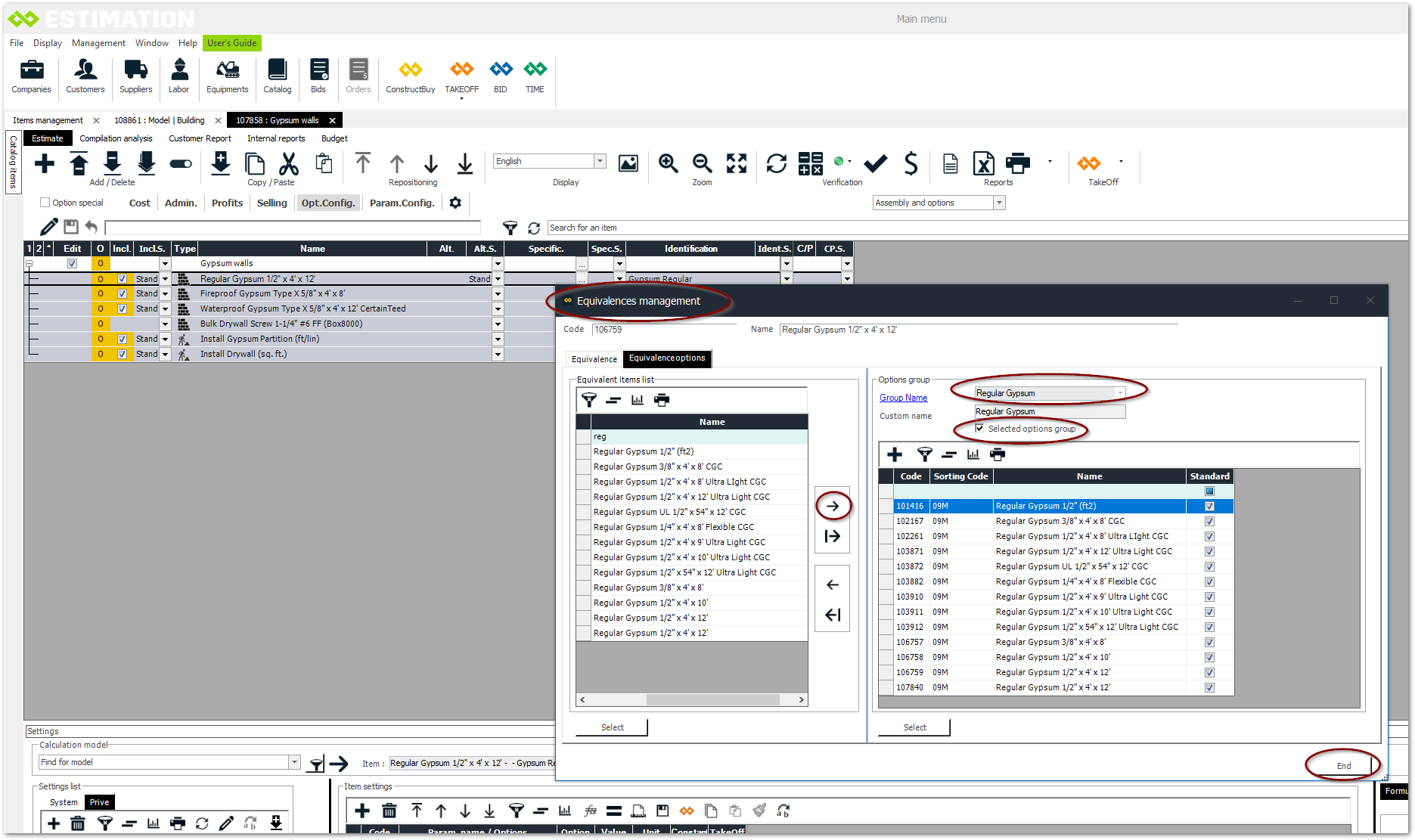 In the equivalence management, select: Regular Gypsum with the drop down menu