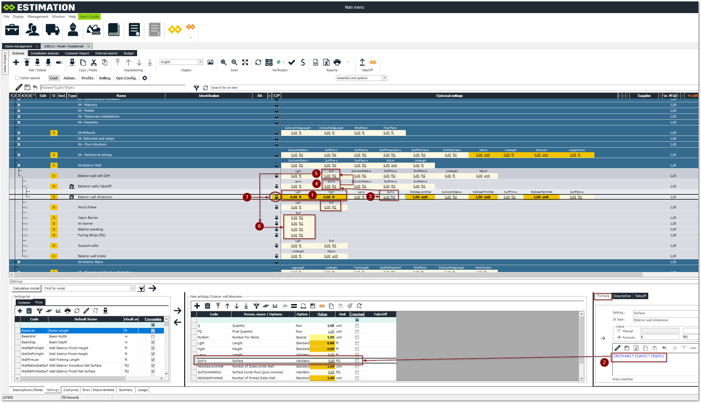 Variables: Represents manually entered quantities and formula results required for the calculation of simple items (Area, linear feet etc...)