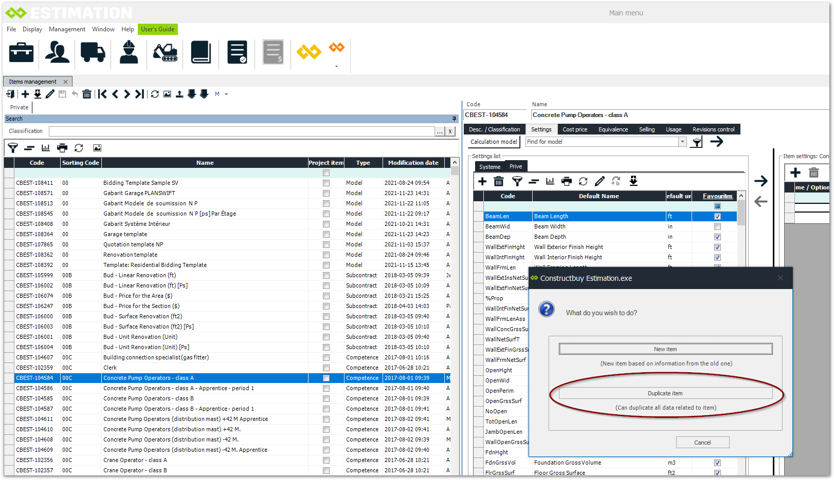 When you have already created items, it is useful to reuse them to create other similar items. To do this, select the item you want to duplicate in your catalog, then click on the "Duplicate" button.
