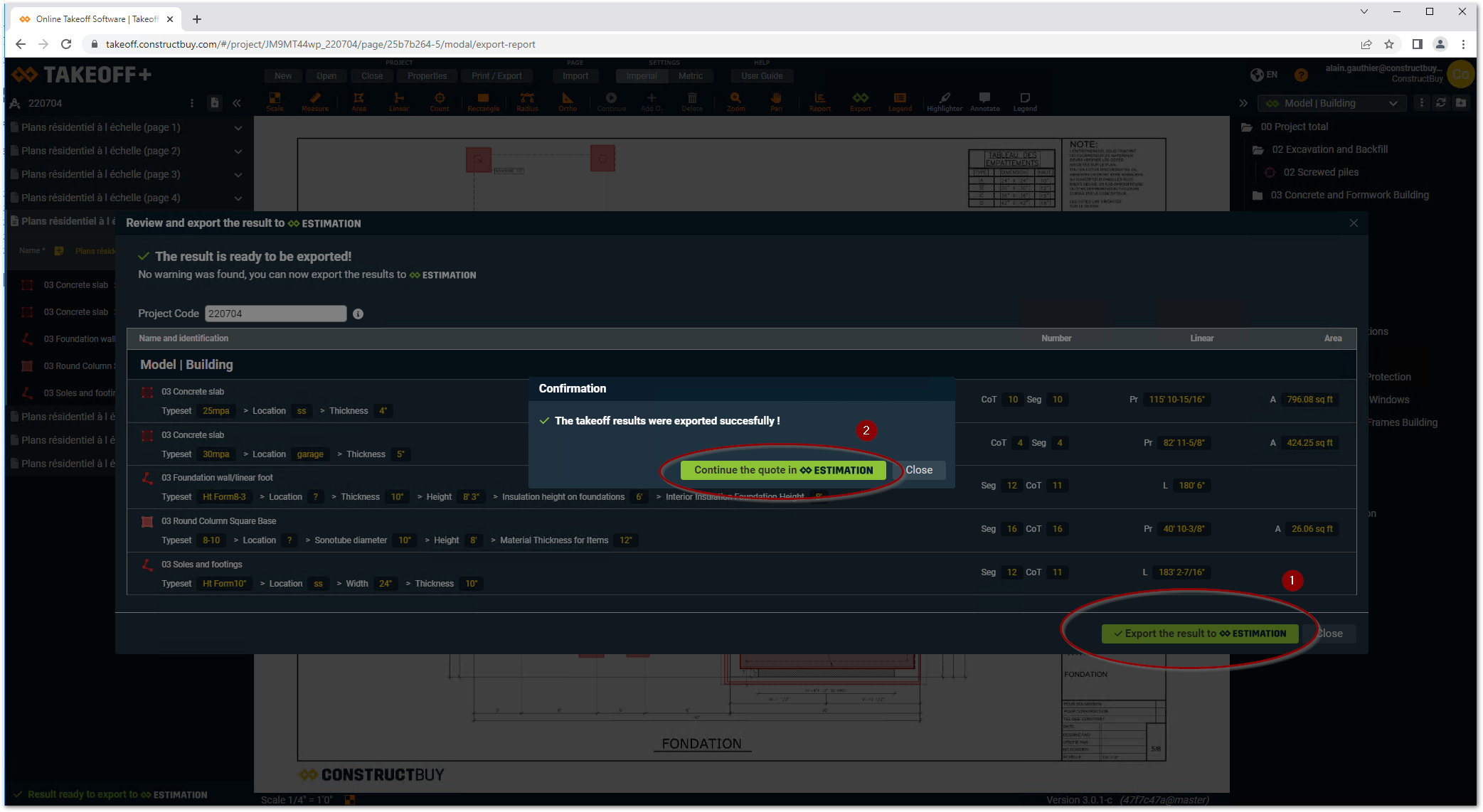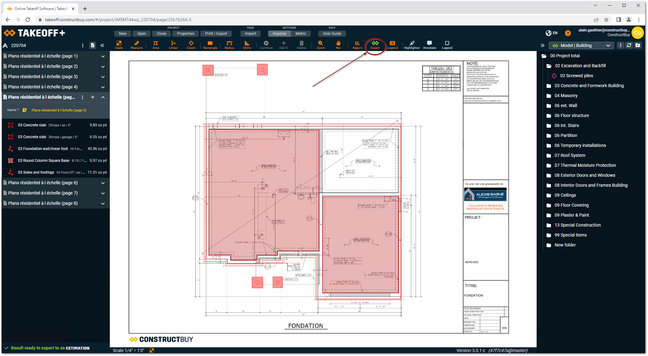 In TAKEOFF, click on Export.