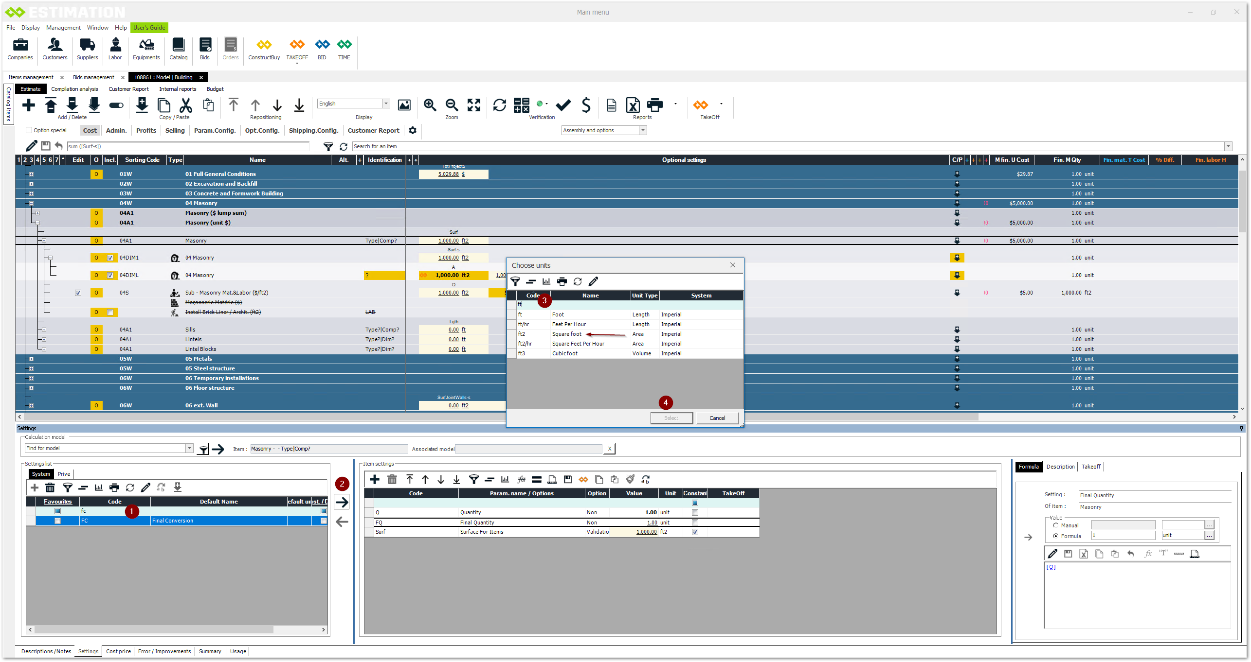 Search for the appropriate type of measure. (in that case: square foot: ft2)