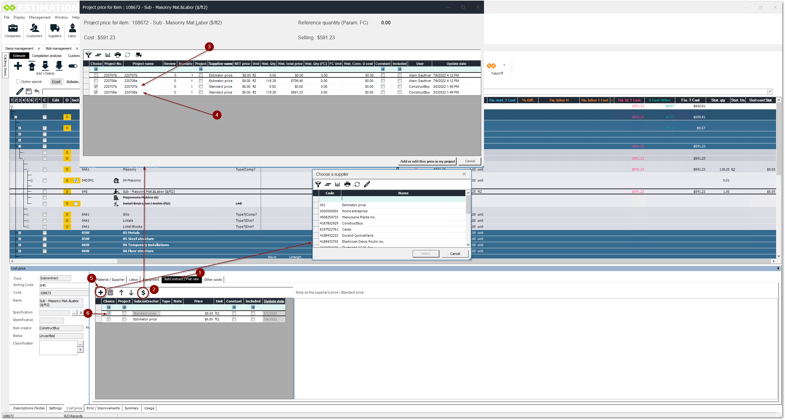 Obtain unit price statistics for a lump sum subcontract