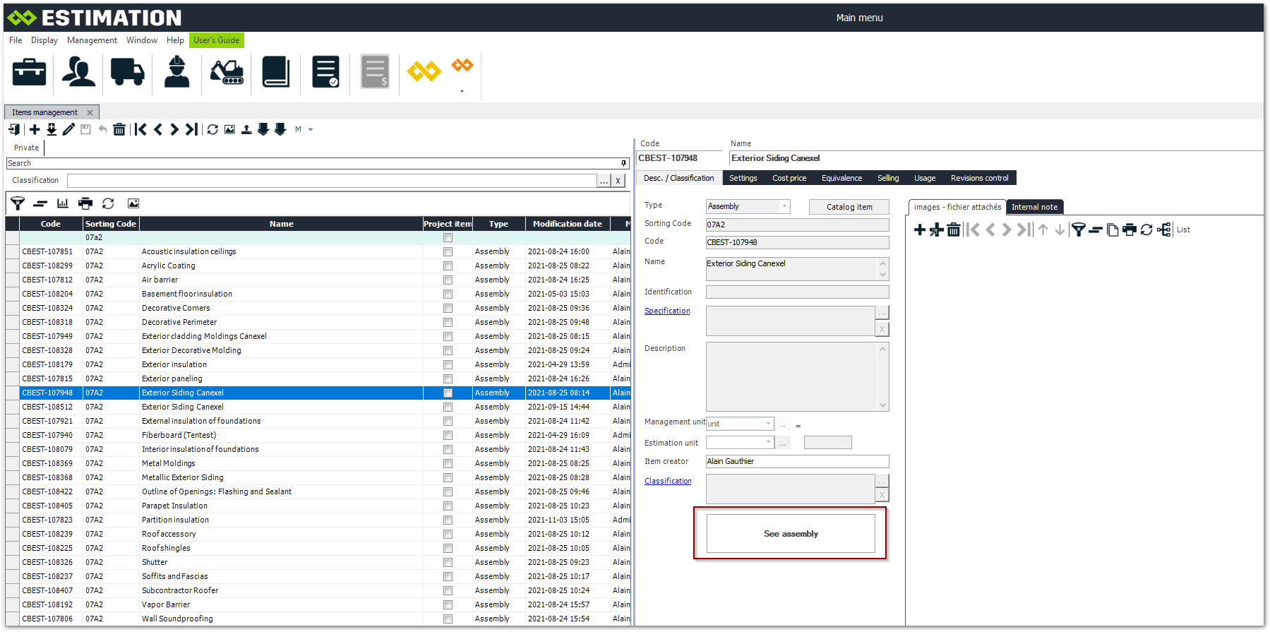 Then, in the right panel, in the tab: Desc. /Classification click on the button "View Assembly".