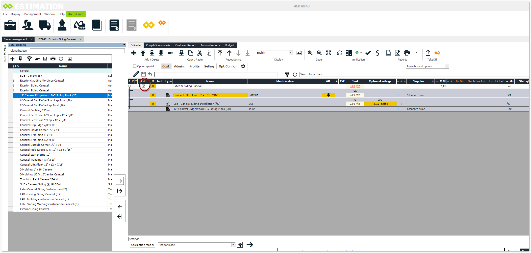 Finally, your assembly is now in "EDITION ". This means that it cannot yet be used anywhere else in the software. To finish this edition and be able to use it elsewhere, click on the check mark in the "Edit" column.