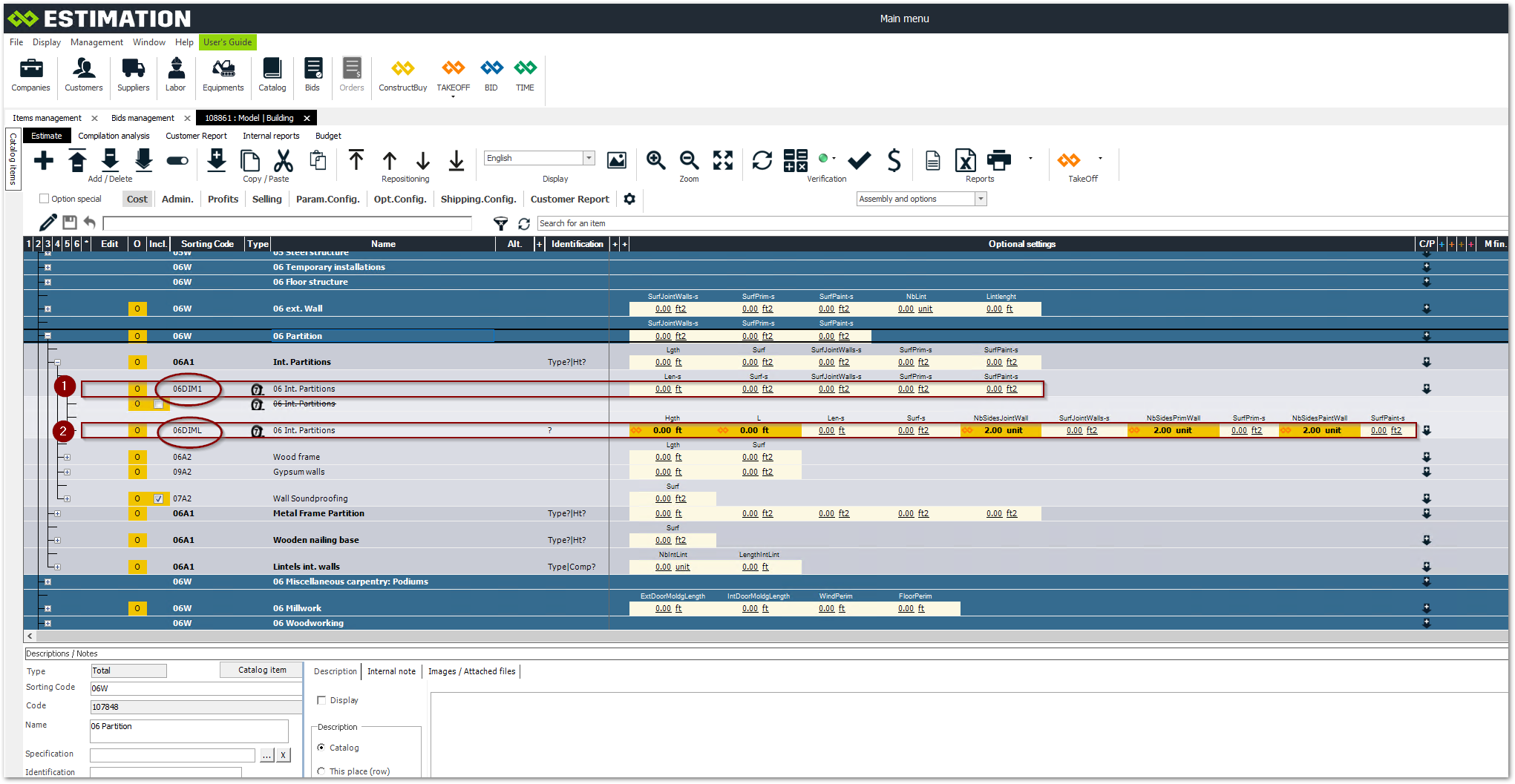 Lines of dimensions (to compile TakeOff)