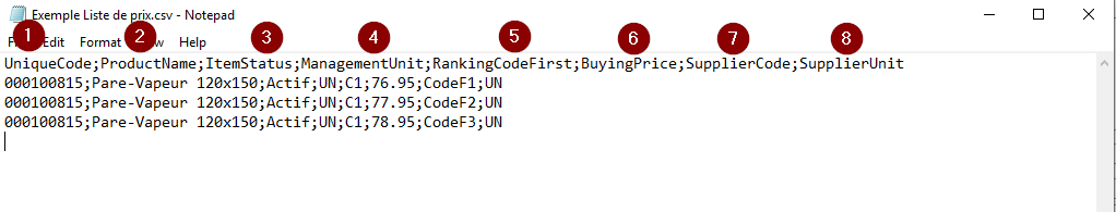 Price Update Template .CSV file