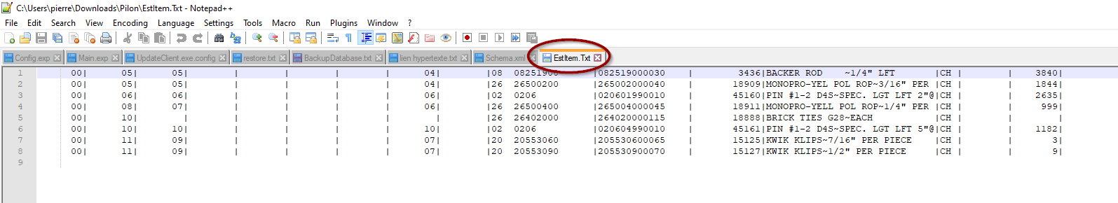 see the file EstItem.txt