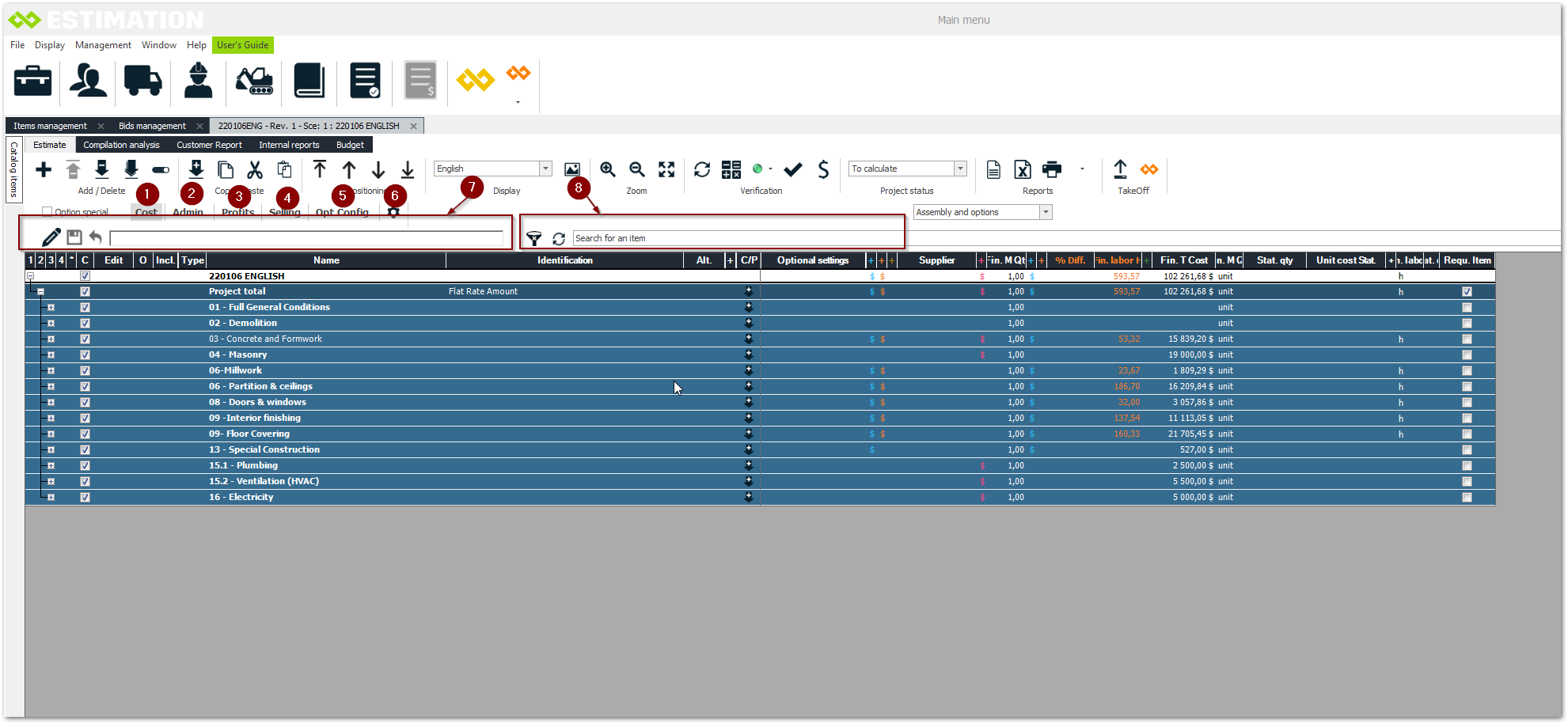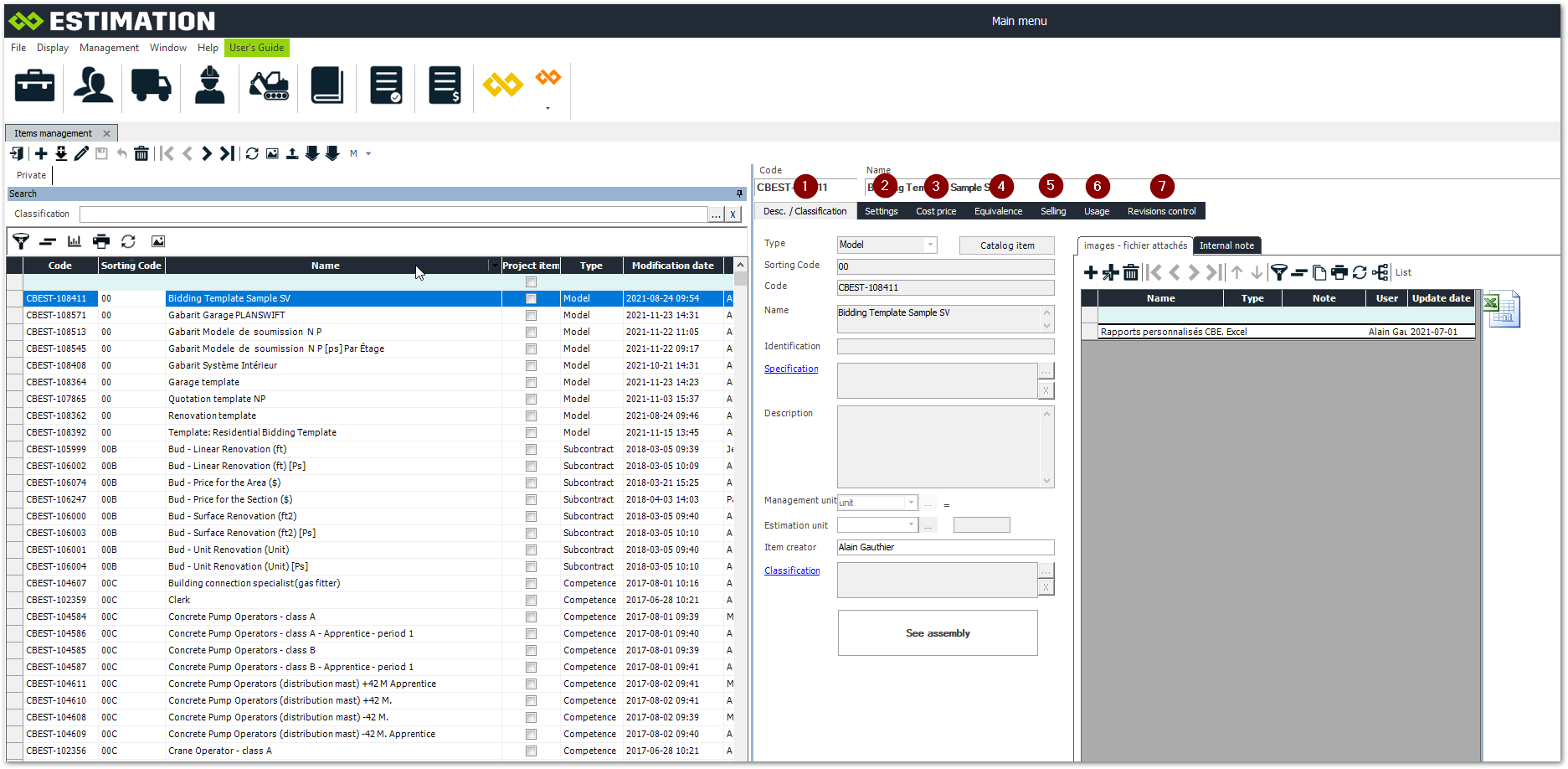Selling: To modify the selling price. (Project or bid items)