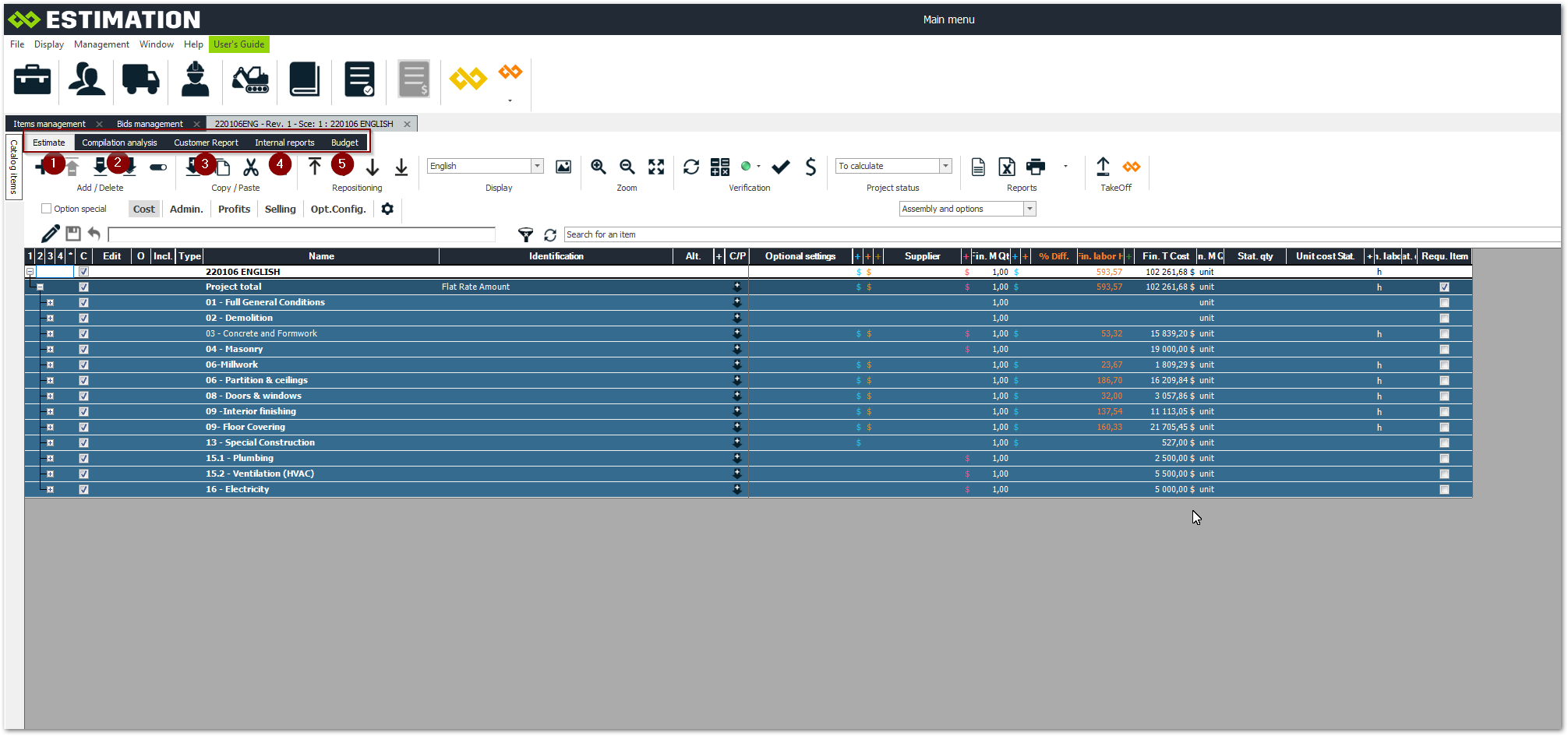 Tabs in ESTIMATION