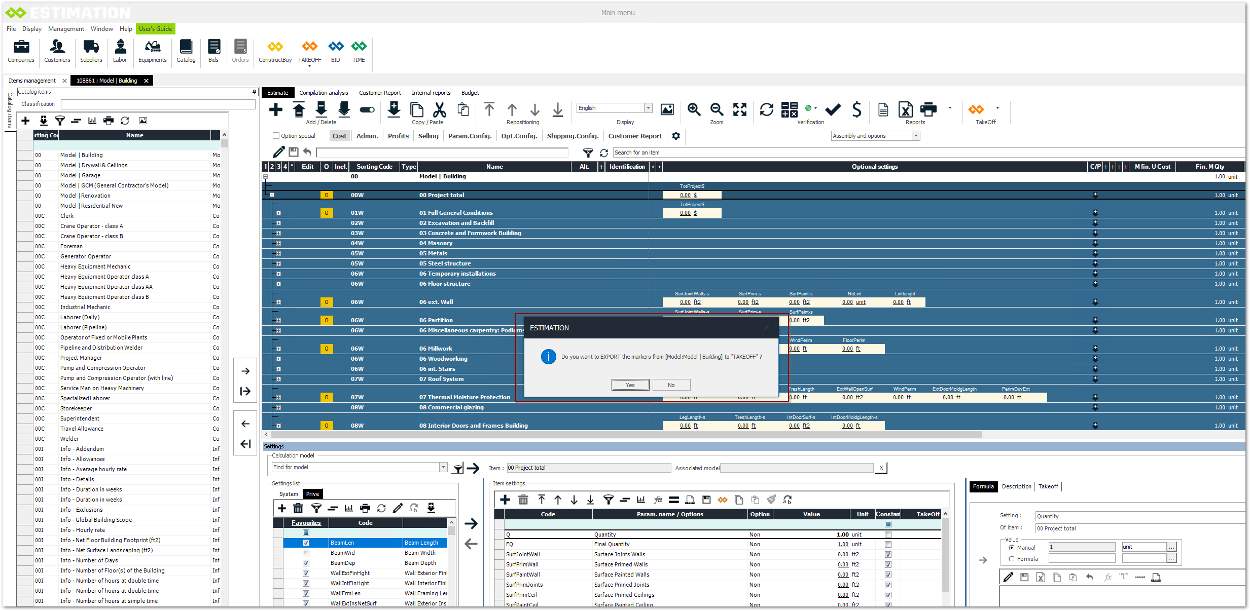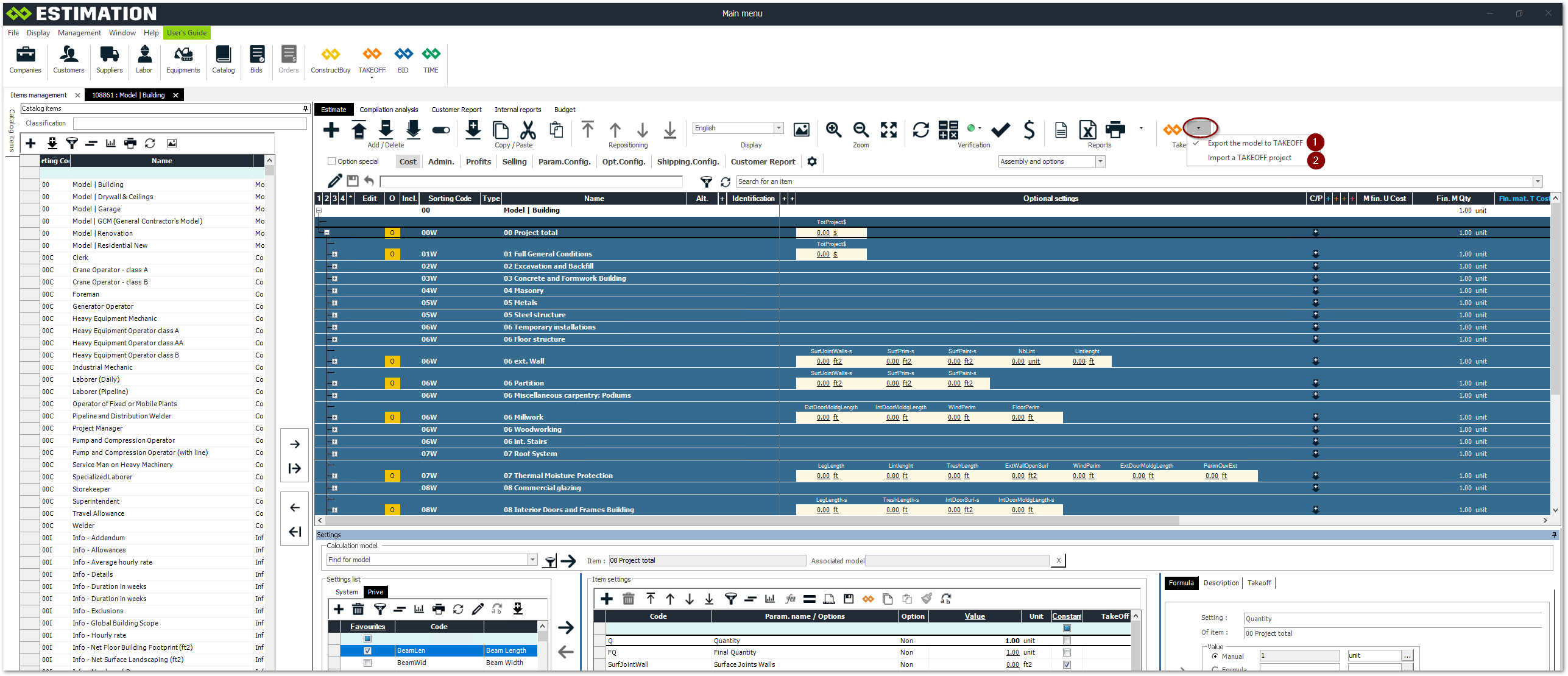 TAKEOFF model export