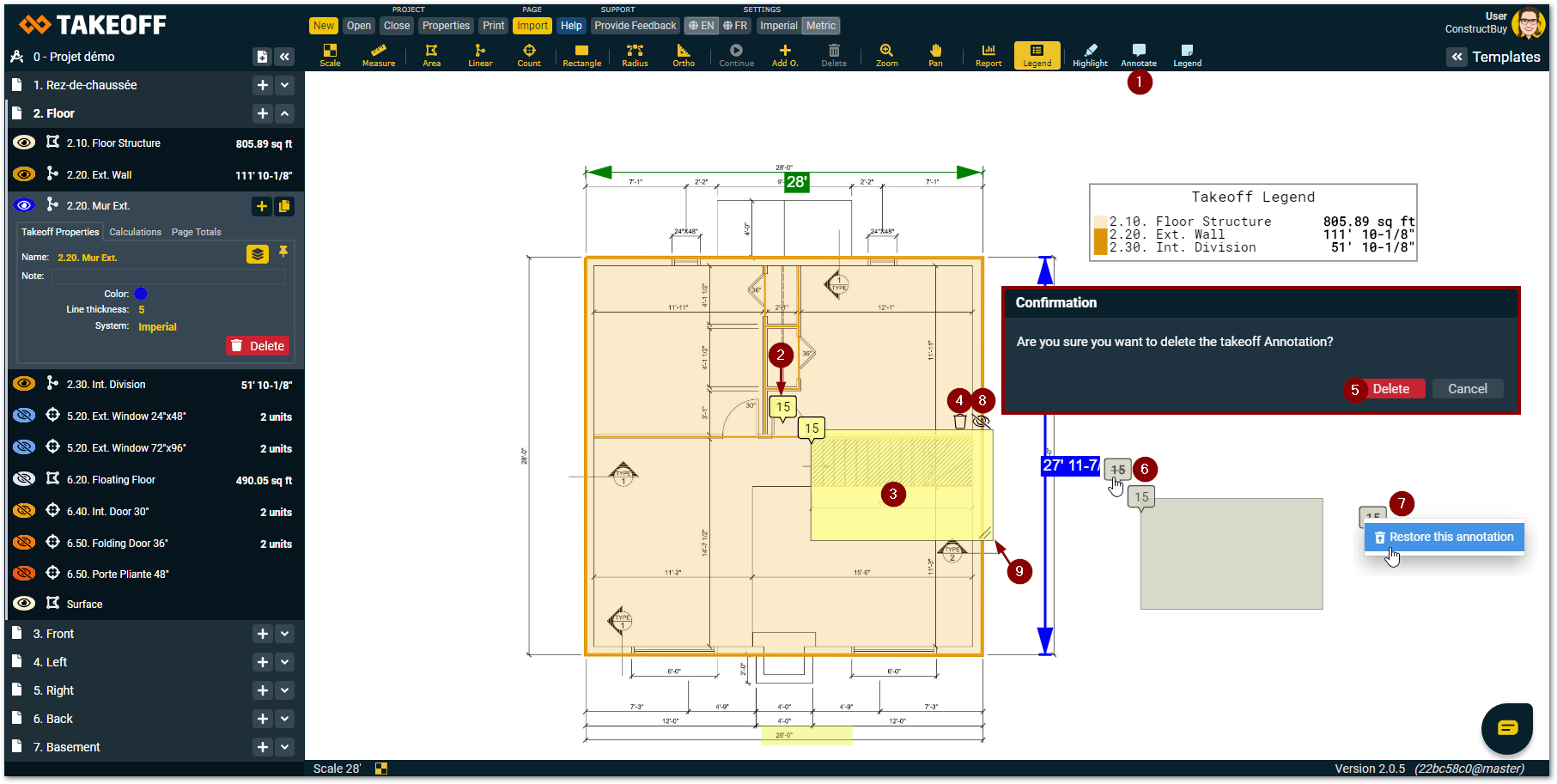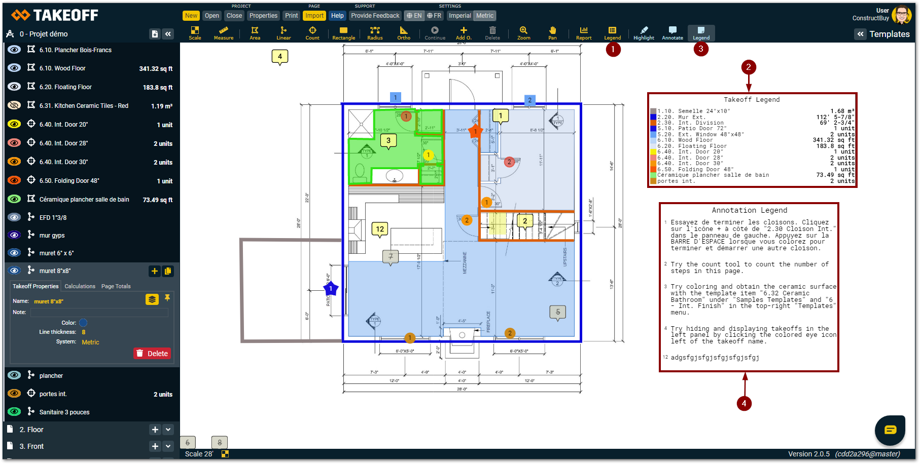 Click on the “Takeoff legend” tool in the toolbar at the top of the screen