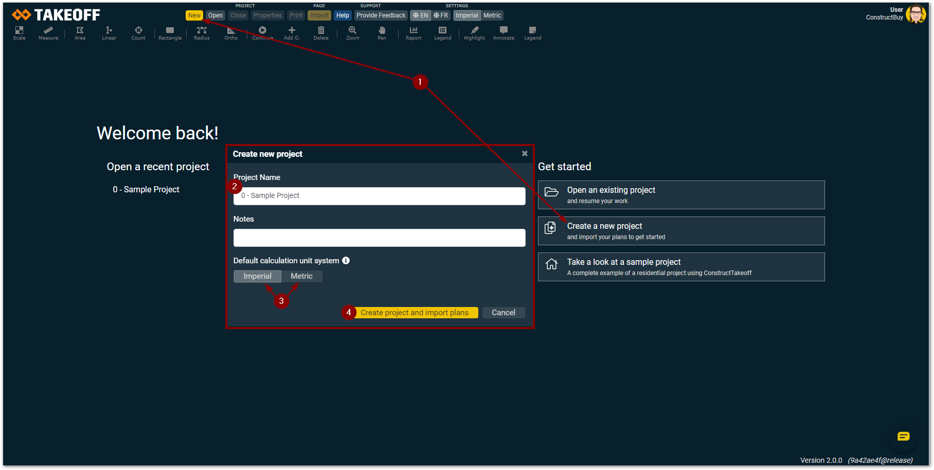 Click on “Create project and import plans”