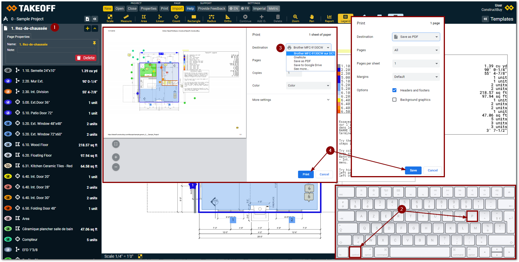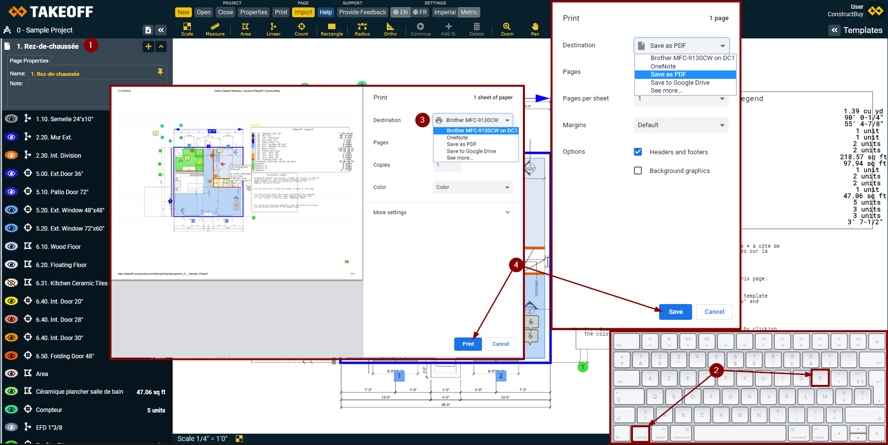 Open the page you wish to print on Takeoff by ConstrucBuy
