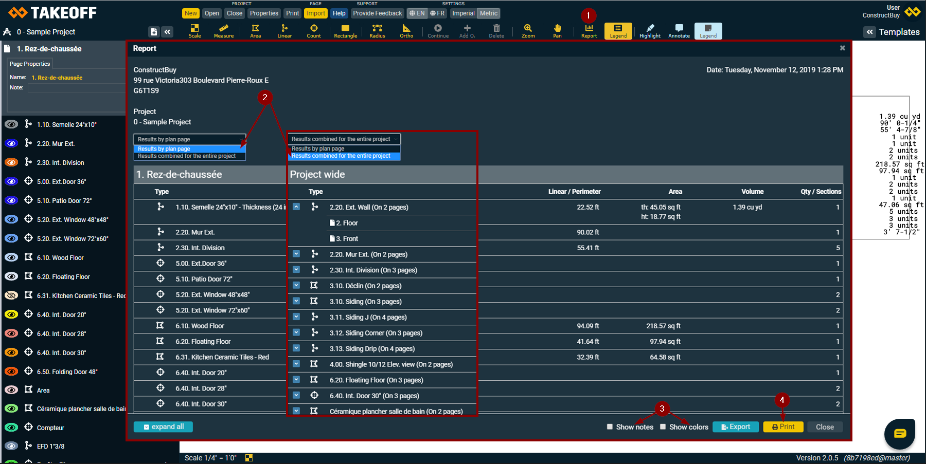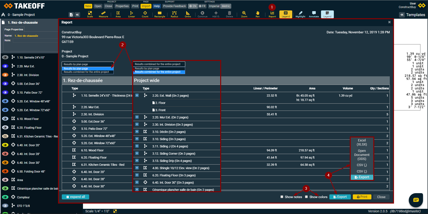 Our report tool allows you to choose how you want to regroup your takeoff’s information: