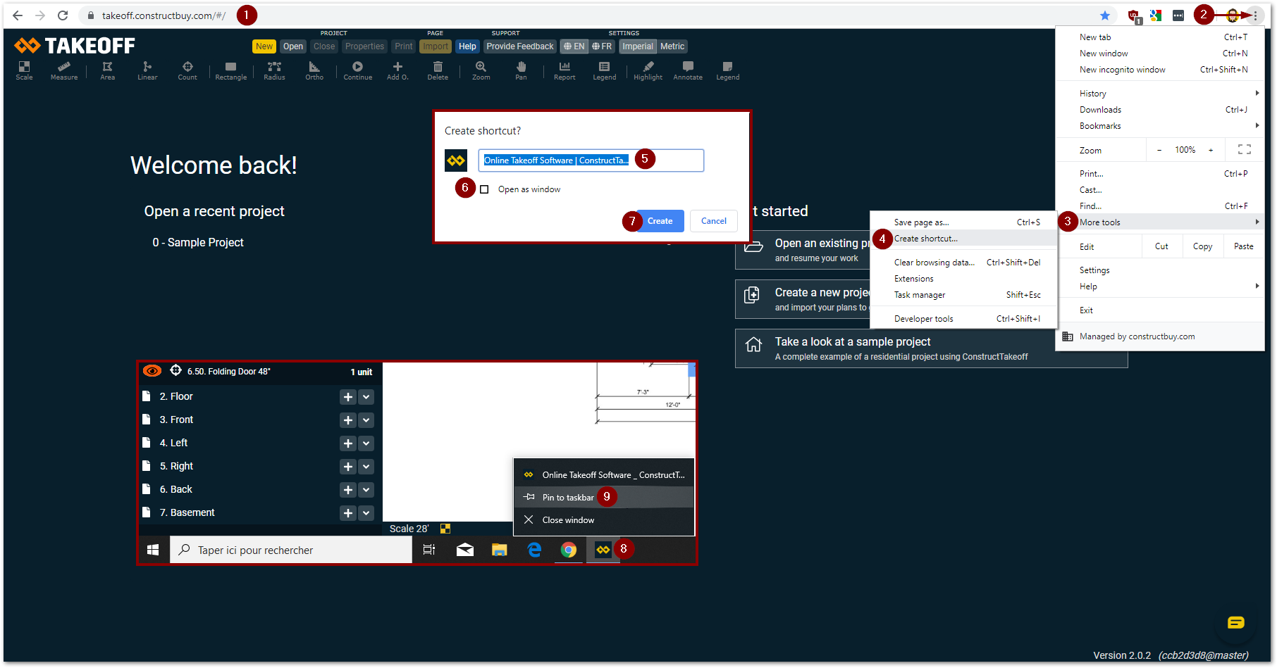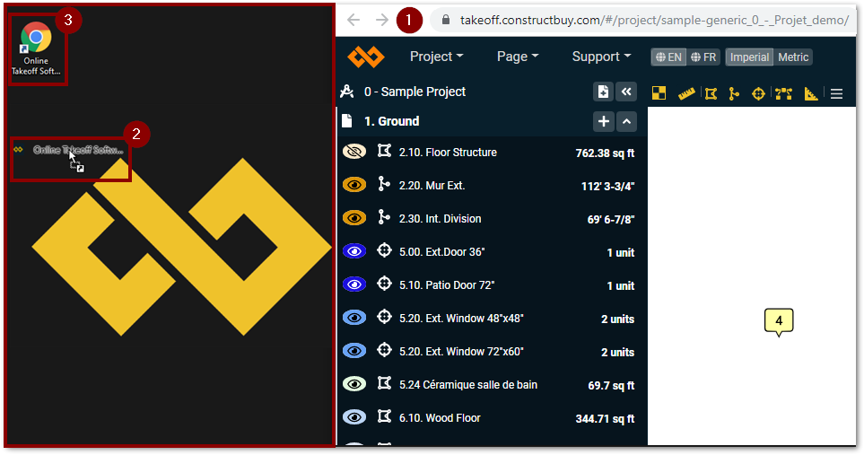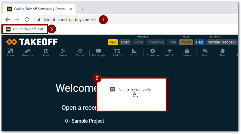 Open your browser and enter the URL for TAKEOFF: https://takeoff.constructbuy.com/#/