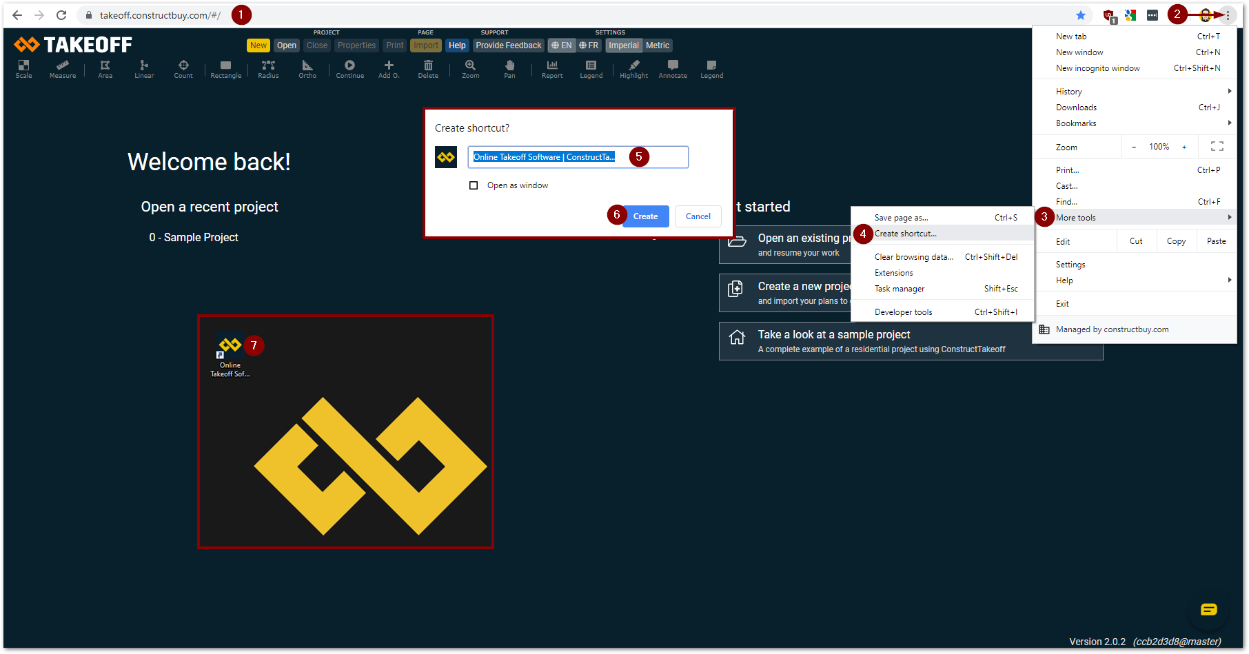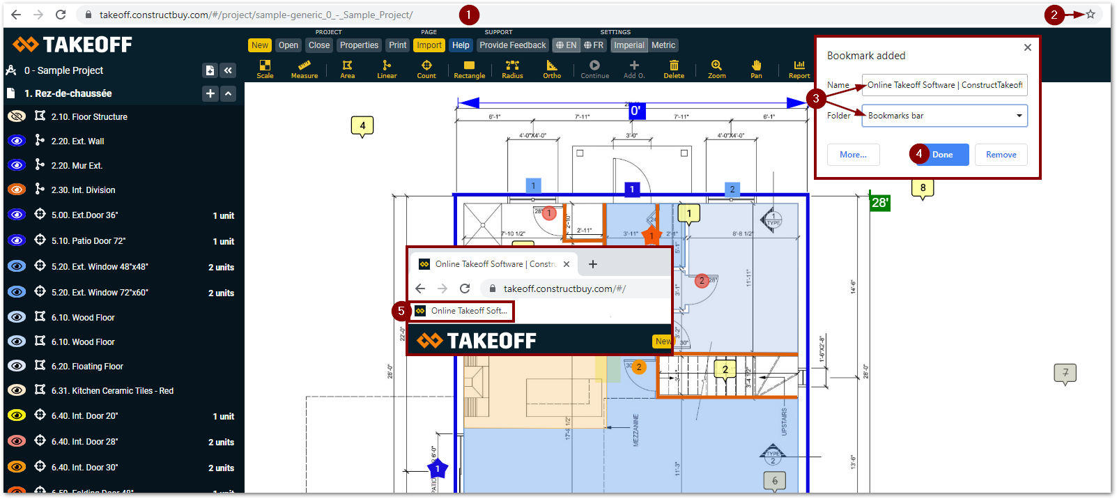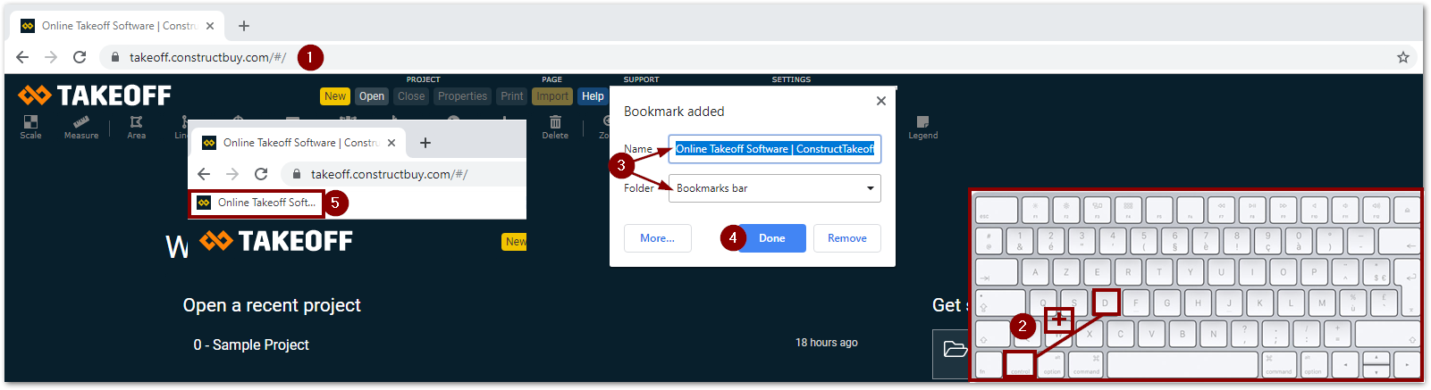 Open your browser and enter the URL for TAKEOFF: https://takeoff.constructbuy.com/#/, then click at the left of the URL address on the padlock